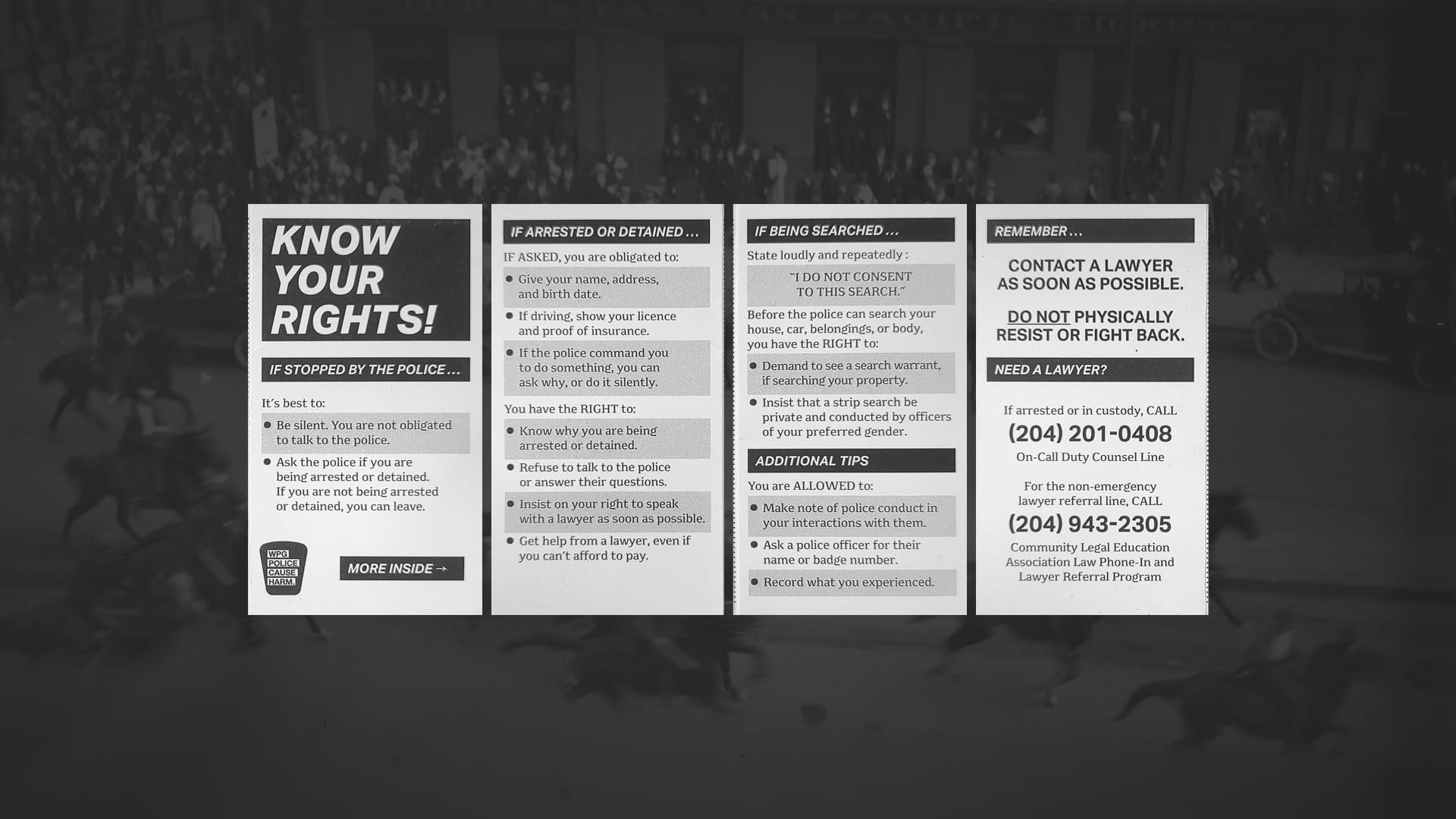Paper card digitized for online reference, from Winnipeg Police Cause Harm.